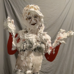 Muddylex was surprised by PrinceofPie with a big sloppy cream pie to the face